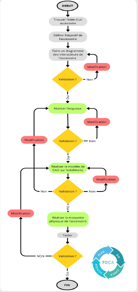 Organigramme de notre démarche de conception pour chaque accessoire.
