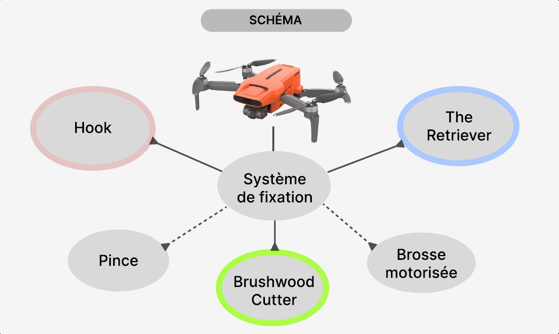 L'idée est de concevoir des accessoires modulables et interchangeables pour un drone existant et ne nécessitant pas de permis.